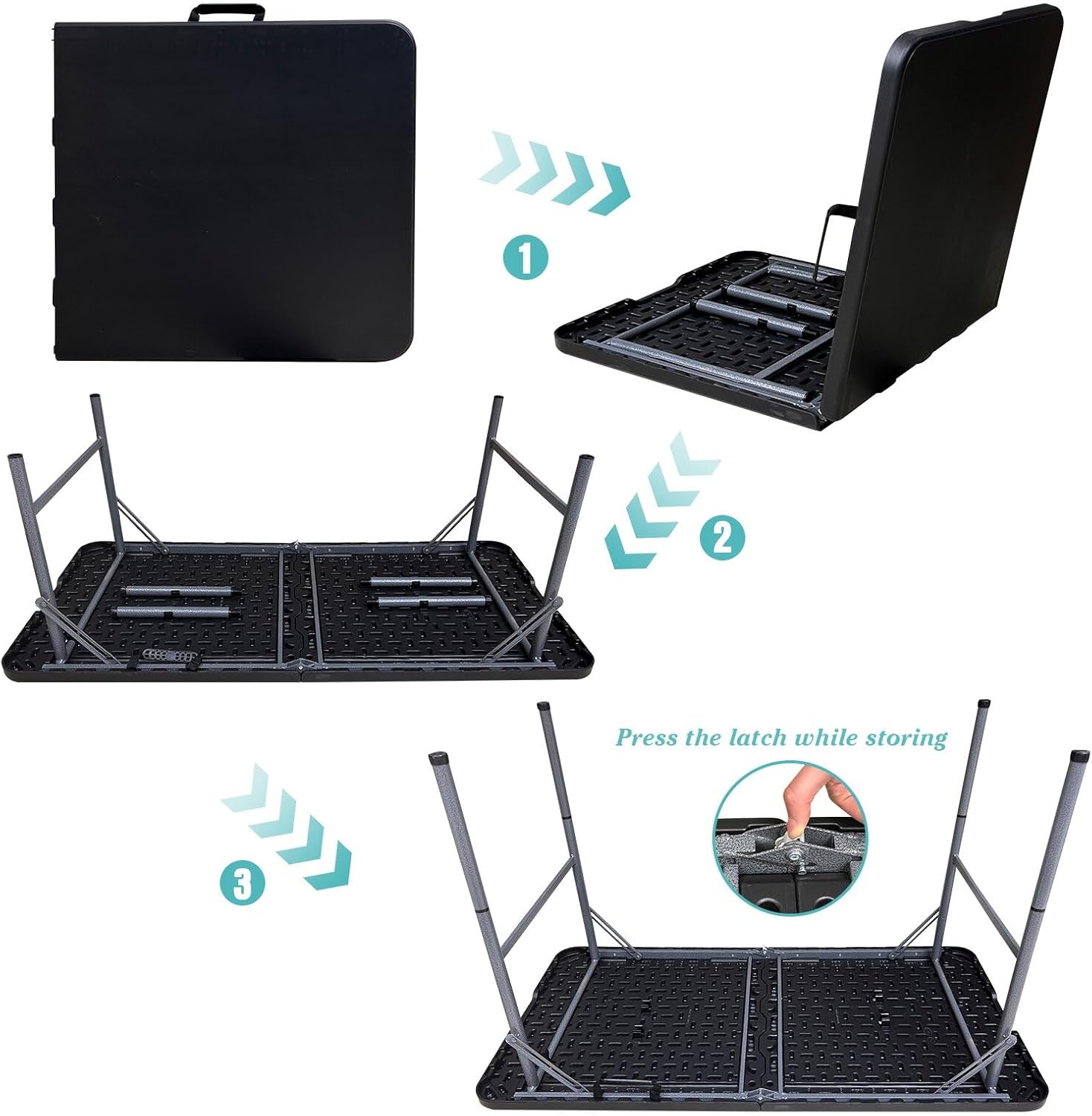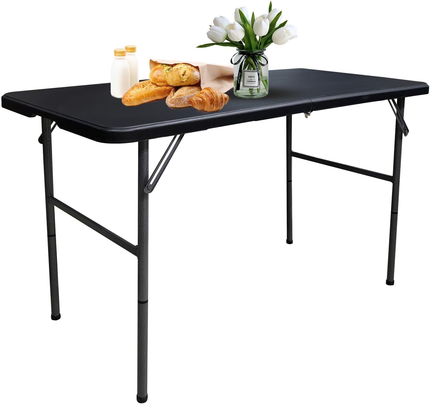Gocamptoo Folding Table,4ft Indoor Outdoor Heavy Duty Portable Folding Square Plastic Dining Table w/Handle (Balck)
