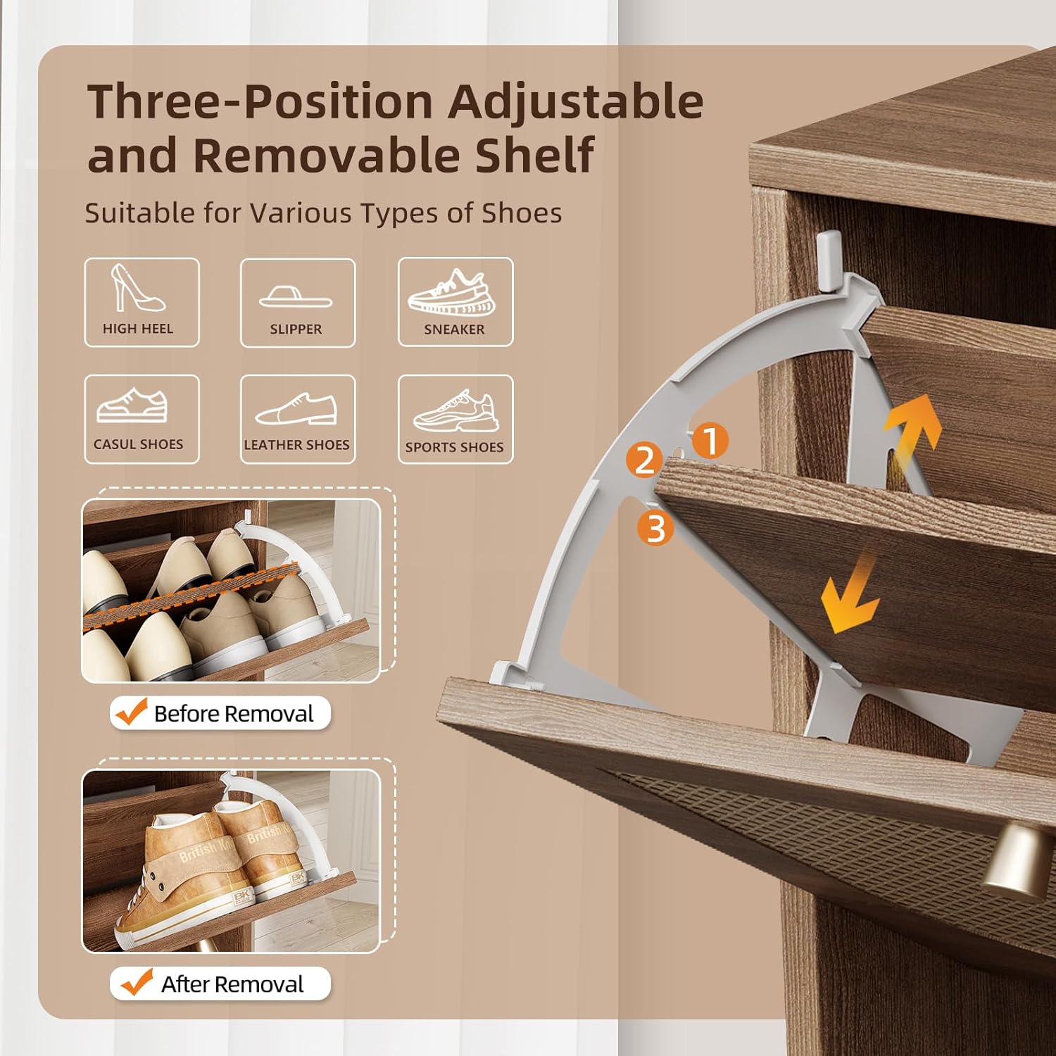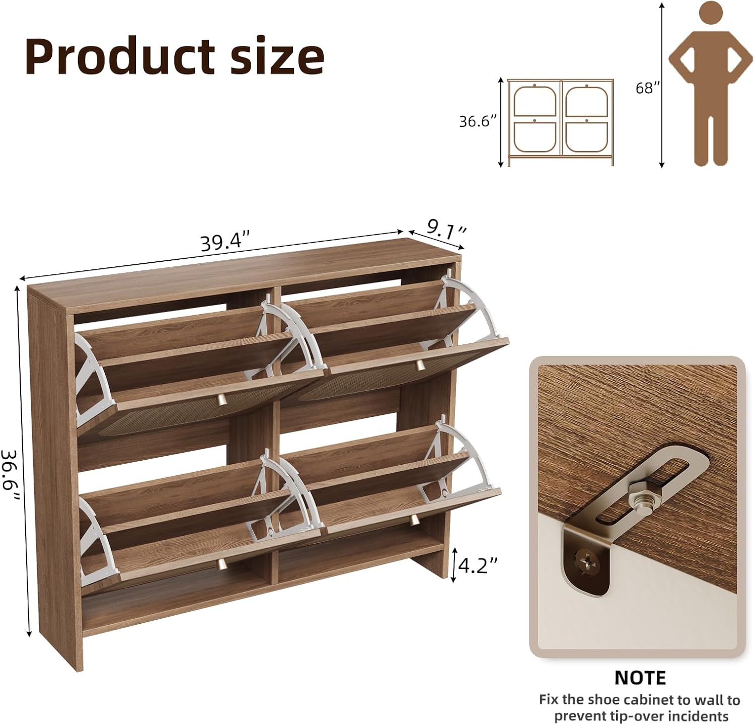 Nicetree Shoe Cabinet Storage for Entryway, Farmhouse Slim Shoe Organizers with 4 Flip Drawers, Freestanding Large Shoe Rack with 3-Tier Adjustable Shelves for Hallway,Foyer, Rustic (Oak)