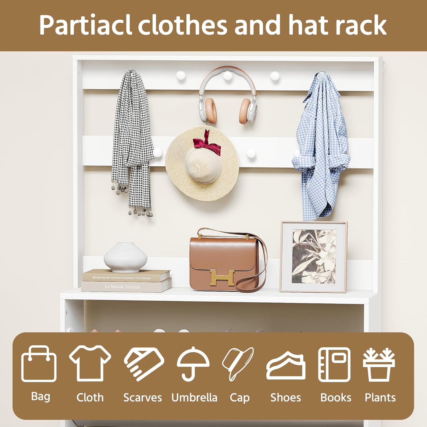 Shoe Cabinet with 3 Flip Drawers, Narrow Shoe Cabinet with 9 Hooks Coat Rack, Freestanding Shoes Storage Cabinets with Adjustable Shelves for Entryway, Hallway, Living Room, White
