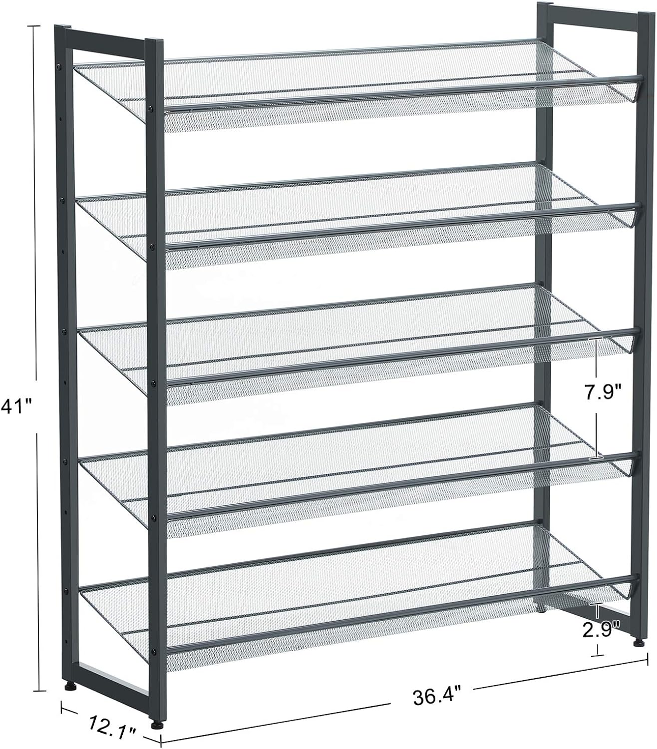 SONGMICS Shoe Rack, 5-Tier Shoe Organizer, Metal Shoe Storage for Garage, Stackable Shoe Shelf, with Adjustable Flat or Angled Shelves, 20-25 Pairs, Charcoal Gray ULMR05GB