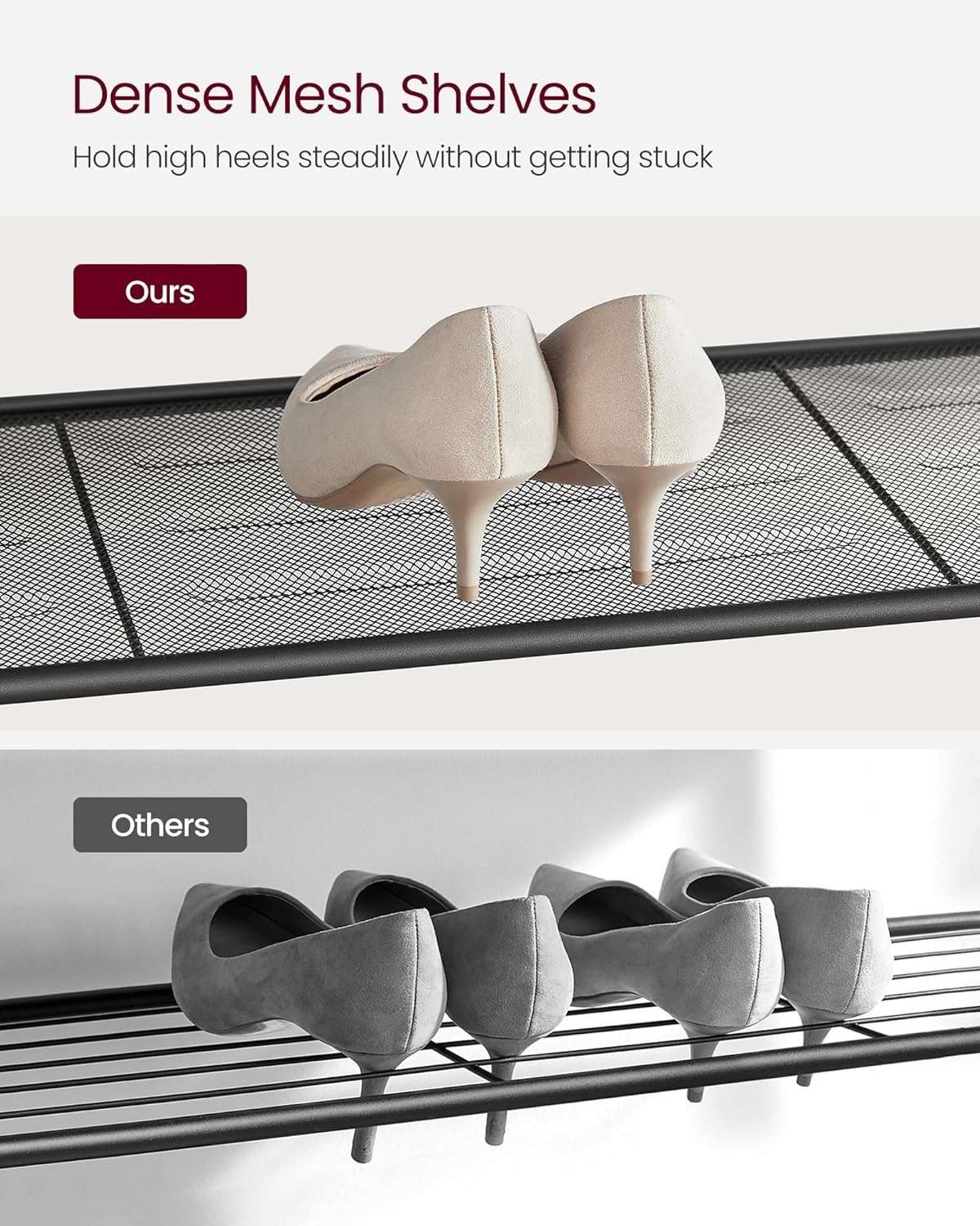 The 4 long shelves offer enough space to neatly line up all your shoes.
