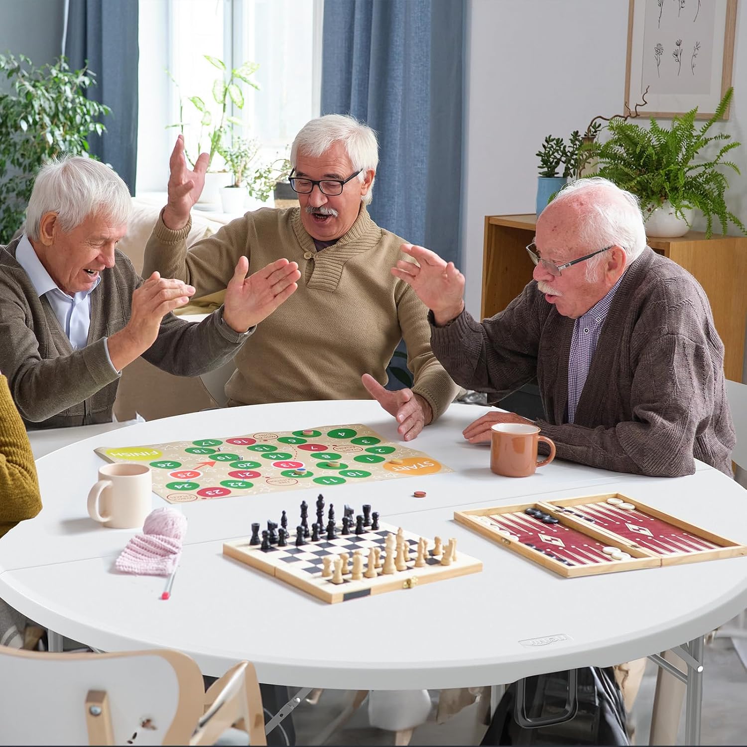 VINGLI 48" Round Bi-Folding Commercial Table, 4 Feet Portable Plastic Dining Card Table for Kitchen or Outdoor Party Wedding Event, 1-Pack